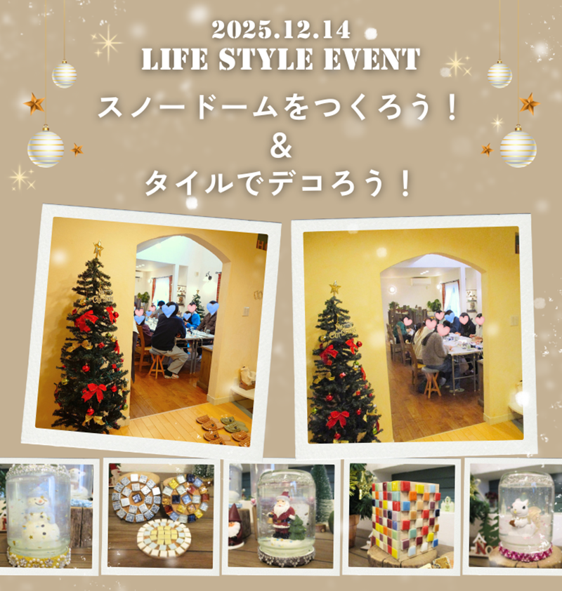 今回は、今年最後となるライフスタイルイベント「スノードームをつくろう!タイルでデコろう!」です!