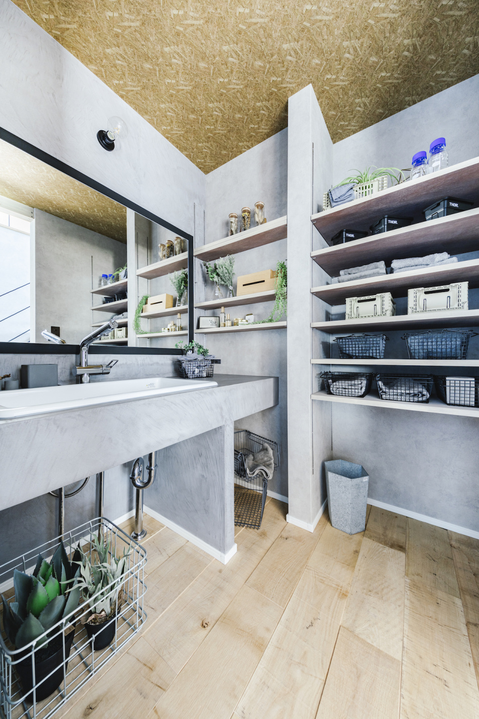 洗面まわりでは、タオルや洗剤をしまえるリネン棚があると便利です。毎日使う物を近くに収められるだけで、家事の流れが整います。