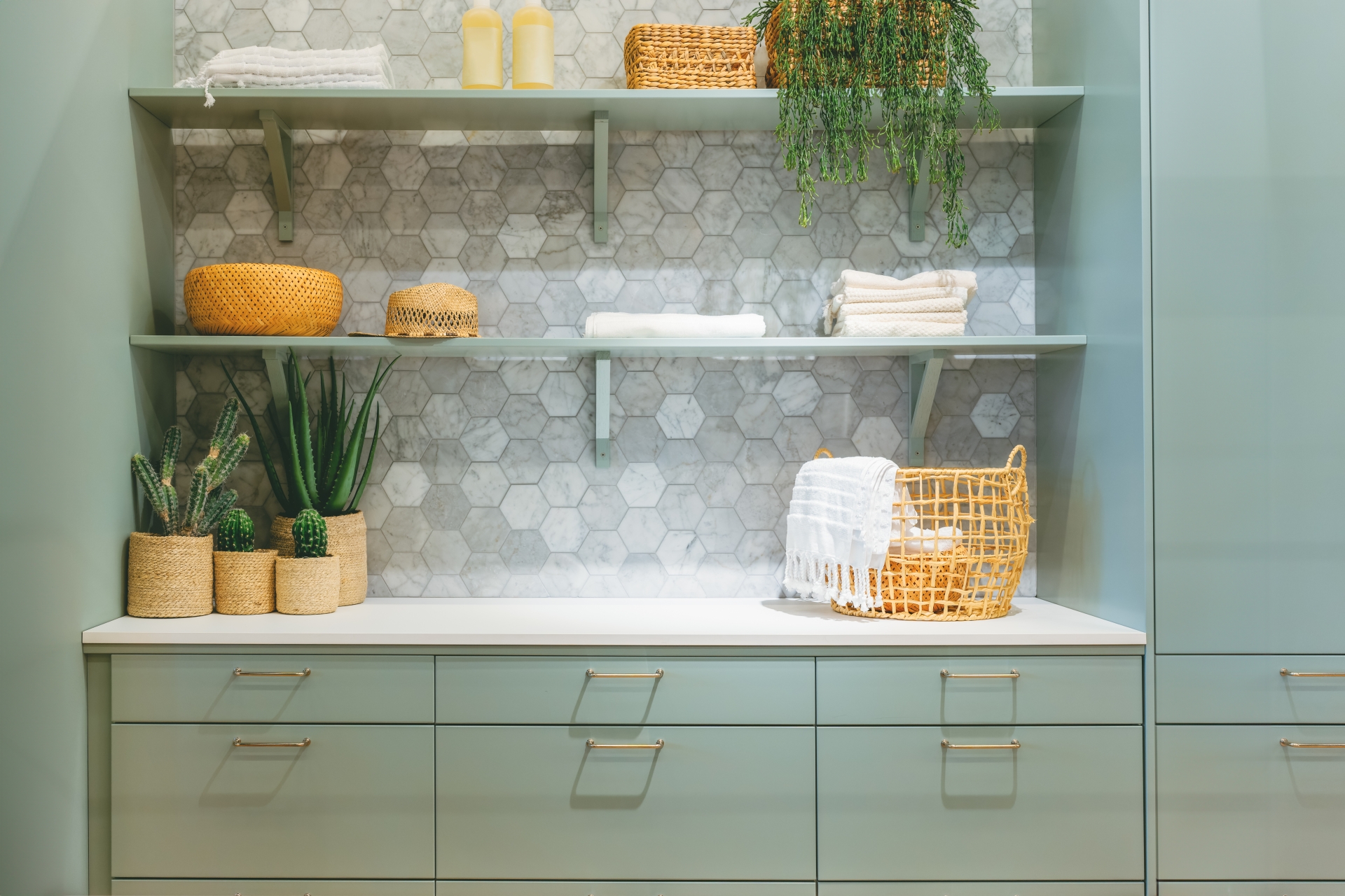収納は「量」よりも「場所」で使いやすさが変わります。たとえば、タオルは脱衣室や洗面室の近くに、パジャマや下着はランドリールームやその近くに置いておくと、洗濯から使うまでの流れが自然につながります。