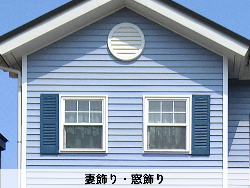 窓飾りや妻飾りがアクセントになっている北米風デザインの外観。