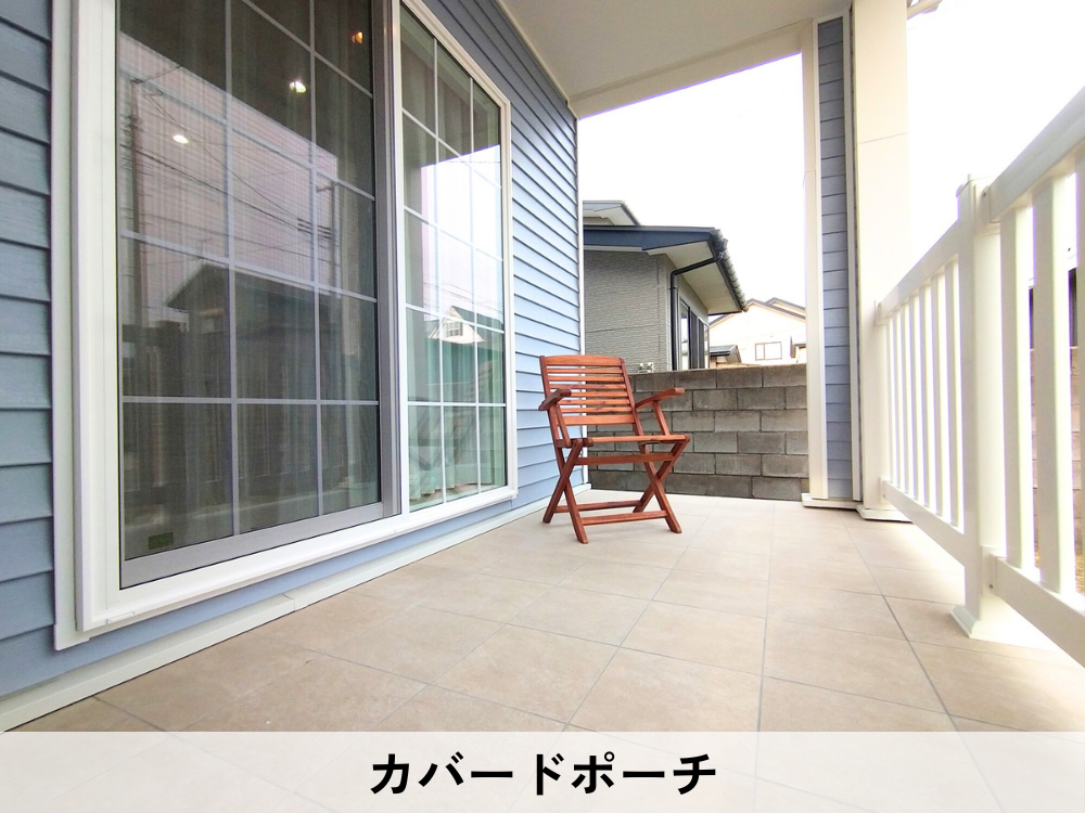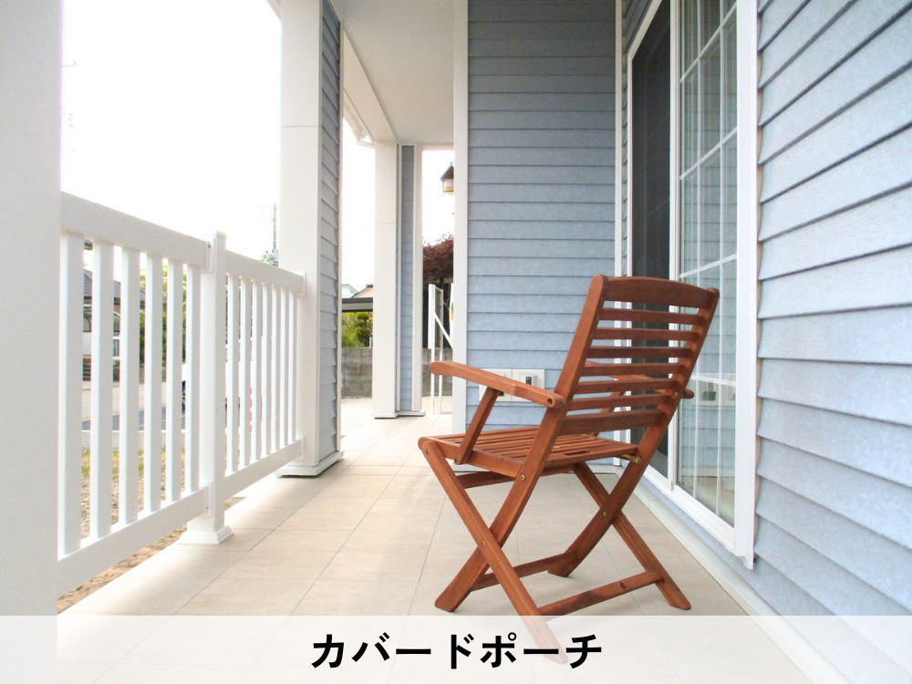 特徴的なカバードポーチは、イスに座って読書をしたり、DIYスペースとして使ったり、鉢植えや除雪道具を置いたりと、季節やライフスタイルに合わせて色々使えそう。