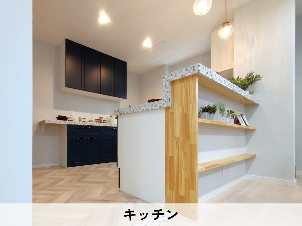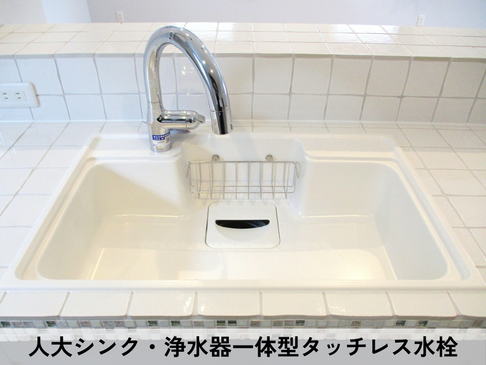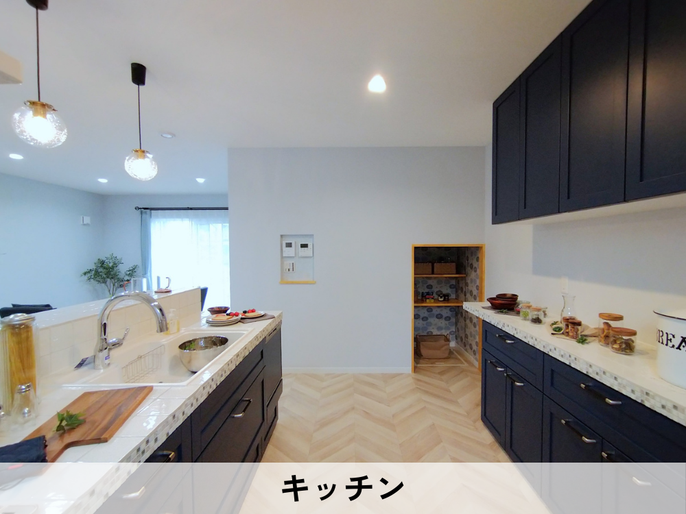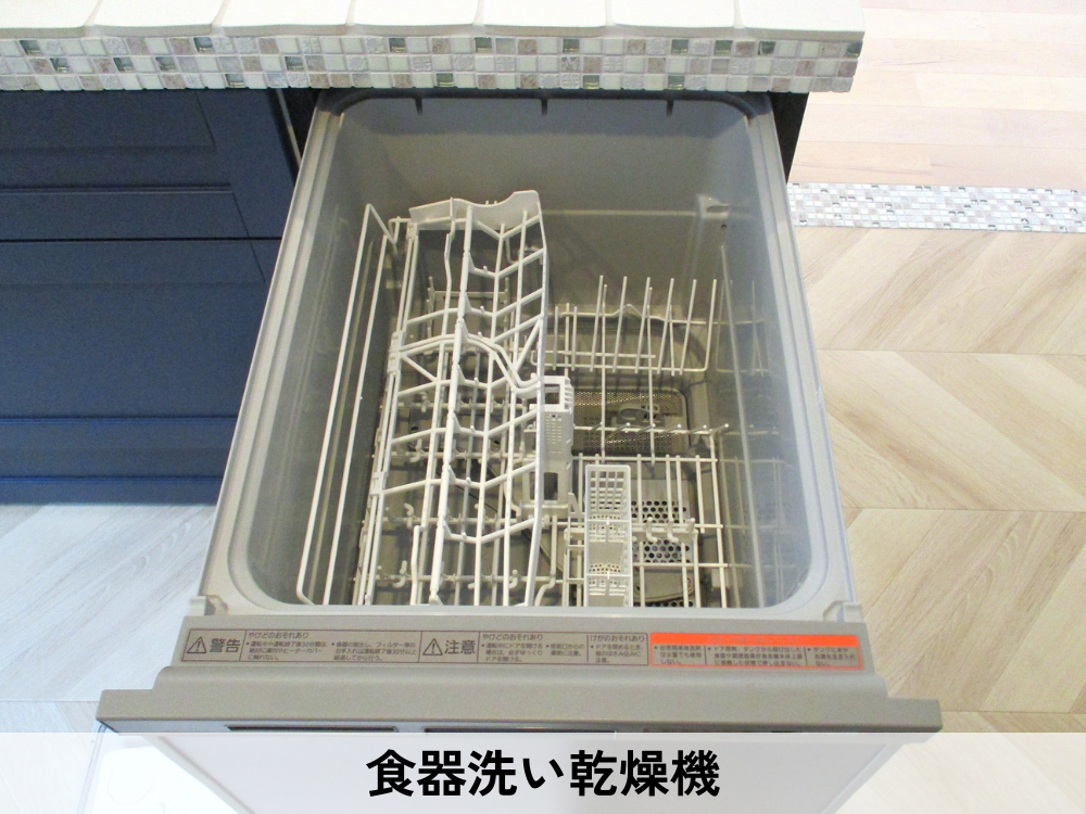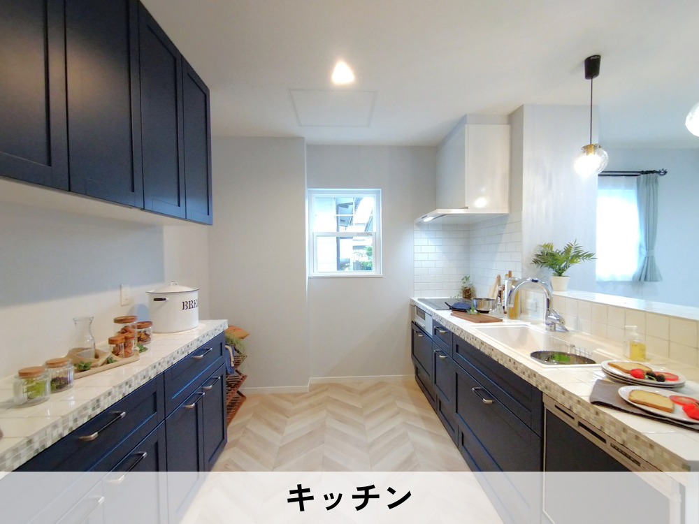 浄水器付きタッチレス水栓や食器洗い乾燥機など使いやすくて便利な設備と、サッと汚れが取れて水にも強いクッションフロア、料理をしている手元が見えにくくて配膳にも便利な立ち上がりカウンターなど、見た目のこだわりはもちろん、使い勝手も抜群です。