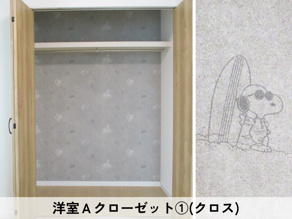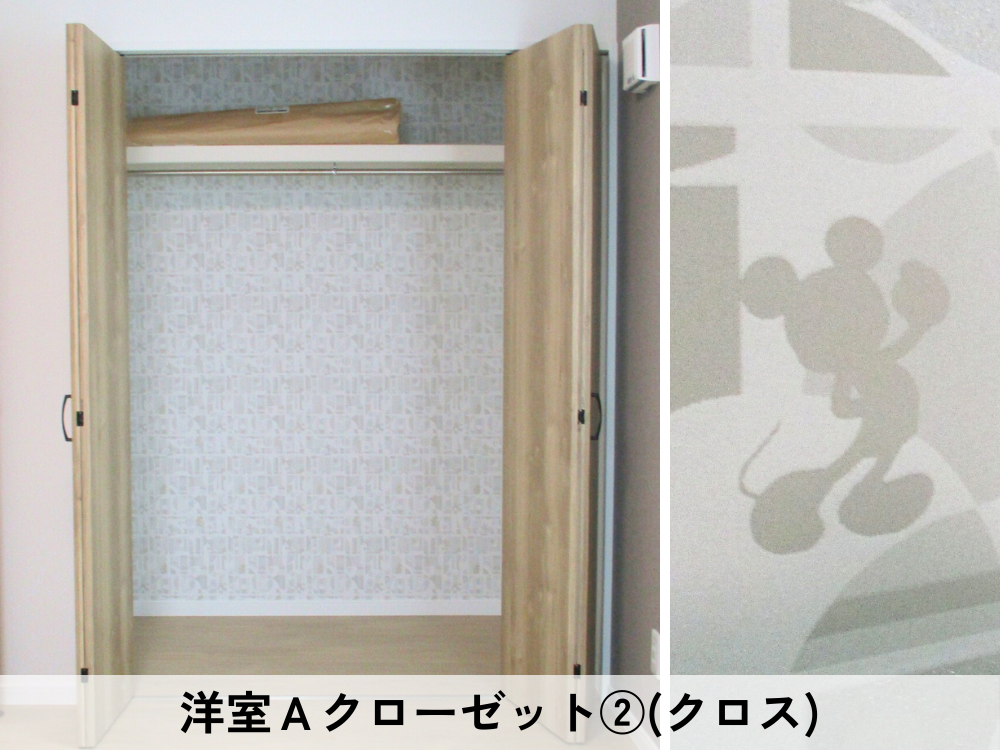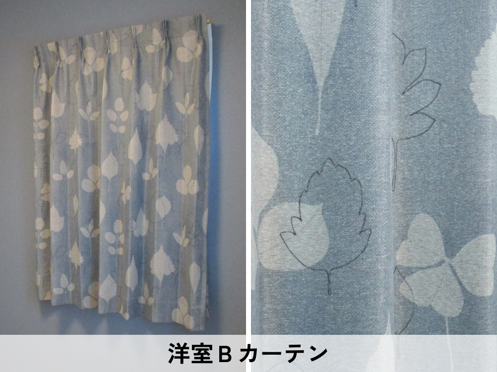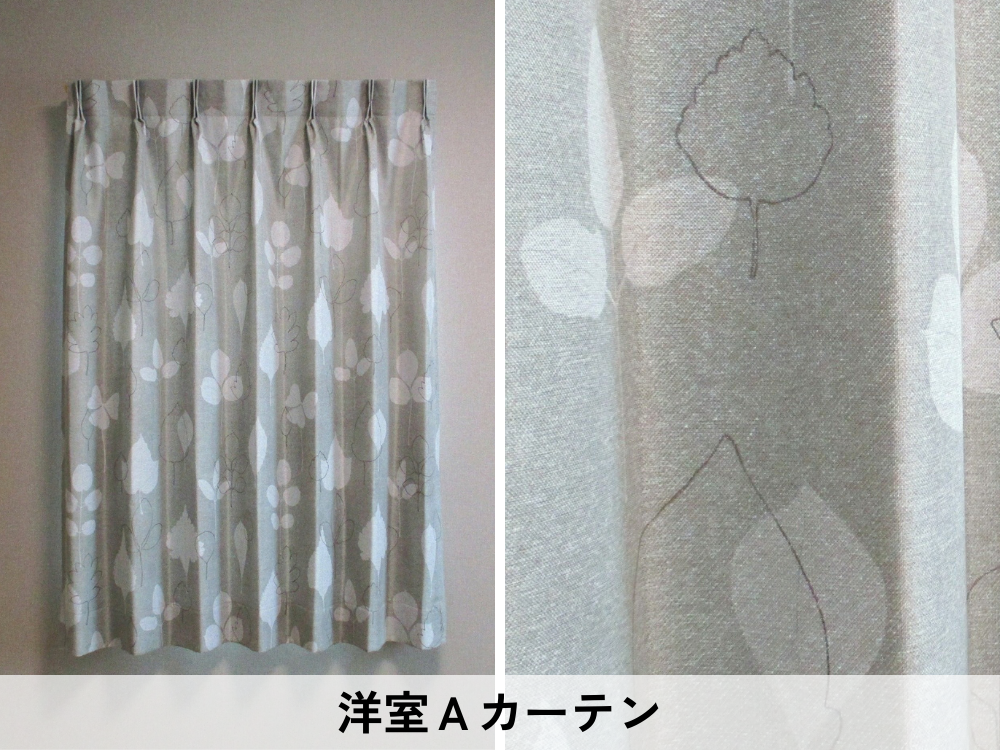 クローゼットのアクセントクロスや葉っぱデザインの色違いカーテンなど、落ち着いた色合いに隠れた遊び心を感じる2部屋。