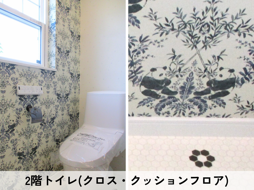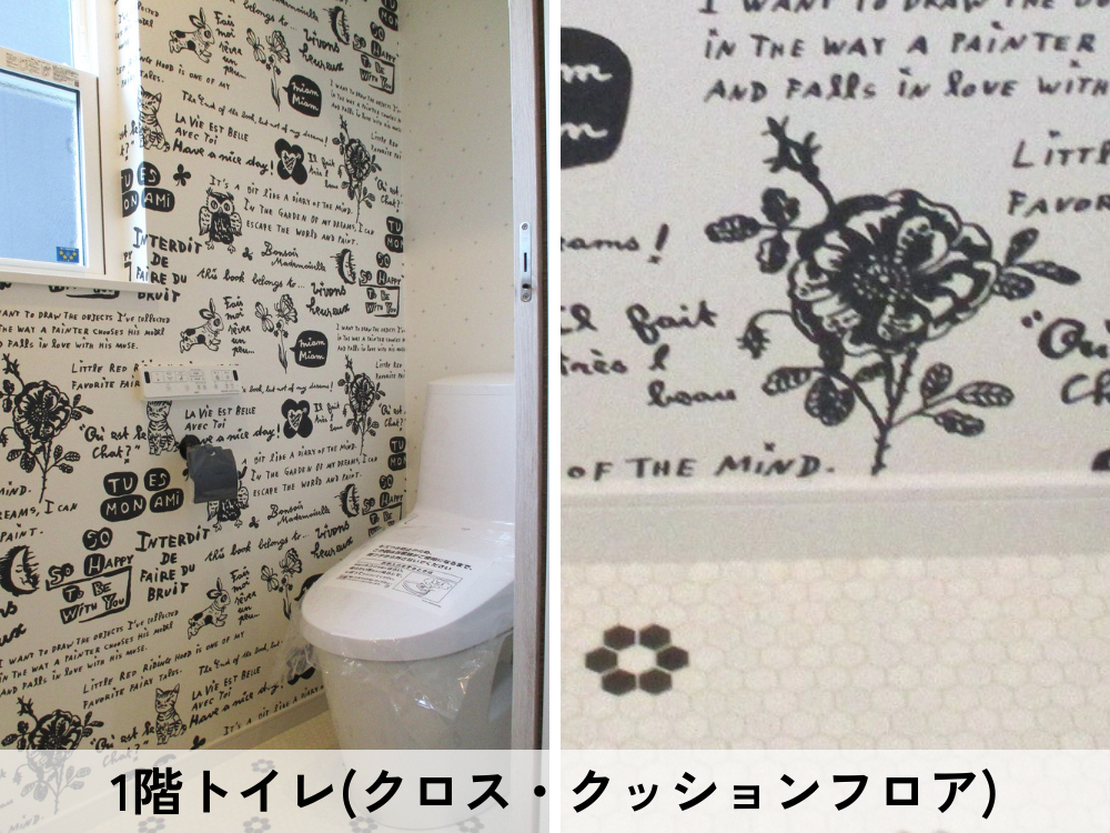 1・2階のトイレは、大胆で楽しいクロス使いがポイントです。